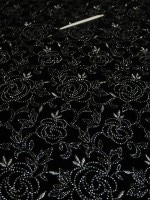 商品名 : 閉店処分大セール お買得 <strong>【ベルベット/オールオーバー/レース】</strong><br> 日本製生地<br> 黒/刺繍銀ラメ<br> 90cm巾3.3m<br> 2381-689<br> 【一点在庫あり ご注文はお早めに】