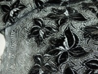 閉店大セール お買得 【チュール/ベルベット ハンドカット/レース 花柄】 日本製生地 黒/グレー系 90cm巾3.8m 2381-705 【一点在庫あり ご注文はお早めに】