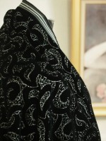 商品名 : <strong>閉店大セール お買得 <strong>【ベルベット/オールオーバー/レース/銀ラメ】</strong><br> 日本製生地<br> 黒/銀ラメ刺繍<br> 90cm巾3.5m<br>スーツ、ワンピ^ス、コート<br>2381-804<br>【一点在庫あり ご注文はお早めに】
